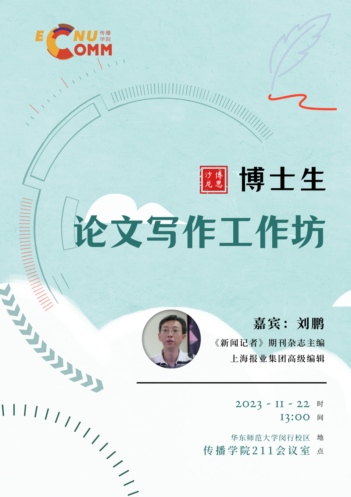 本次学术沙龙特邀《新闻记者》期刊杂志刘鹏主编,讲解博士生期刊论文写作及投稿相关的经验和技巧,并对部分同学的论文作点评指导。欢迎有兴趣的博士和有意深造的硕士研究生同学参与!